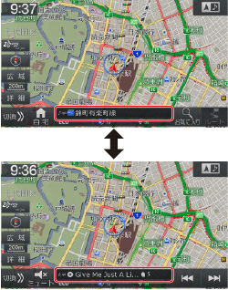 現在地画面上の操作スイッチを、ナビ操作モードかAVソース操作モードに切りかえることができます。