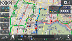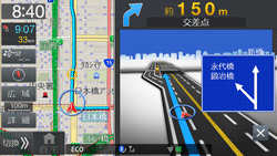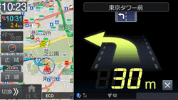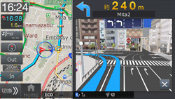 ルート案内中に案内ポイントが表示されている交差点が近づくと、交差点拡大図が表示されます。