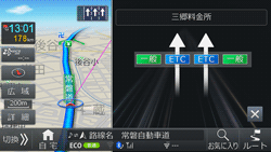 ETCレーン情報のある料金所が近づくと、ETCレーン案内図が表示されます。