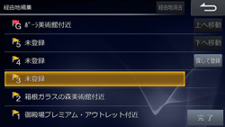経由地編集画面で[完了]にタッチするとルートが再探索され、目的地案内を再開します。