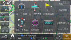 ルート案内中の現在地画面で[ルート]にタッチし、ルート画面を表示します。