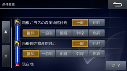 探索条件を変更します。経由地を設定している場合は、経由地までの区間ごとに探索条件を変更できます。