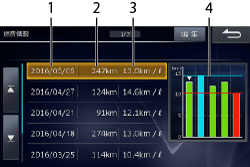 エコインフォ画面で[燃費情報]にタッチすると、燃費情報画面が表示されます。