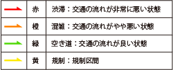 渋滞地点や渋滞区間などを地図上に矢印で表示します。