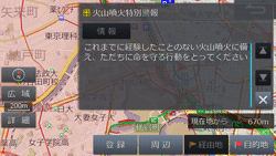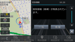 大雨や大雪、津波など気象に関する情報を受信すると緊急情報画面が表示されます。