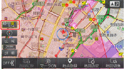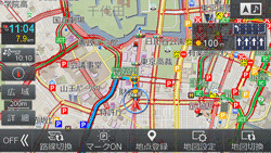 渋滞・混雑・空き道表示は地図スケールが1km以下の詳細な地図で表示されます。