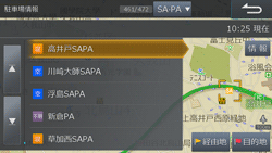 高速道路ではサービスエリア(SA)/パーキングエリア(PA)のリストを表示します。