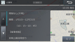 規制やイベントなどが予定されているエリアのリストを表示します。