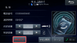 ナビ画面などを表示している場合は、にタッチして通話画面に切りかえてから[終了]にタッチします。