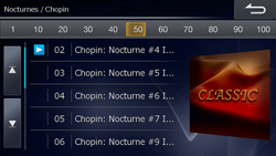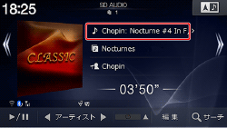 再生対象となっている曲名をリスト表示します。リストから聴きたい曲を選ぶことができます。