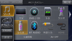 AUDIO/[MODE]スイッチを押し、AVソースメニュー画面で[USB]にタッチします。