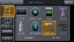 AUDIO/[MODE]スイッチを押し、AVソースメニュー画面で[外部入力](または設定した外部機器名称)にタッチします。