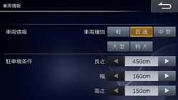 「車両情報」の[軽][普通][中型][大型][特大]のいずれかにタッチします。