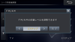 ソースごとに基準となる音量レベルを調整します(初期設定値はいずれも「0 ステップ」)。
