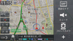 フロントカメラ映像は、本機のオプションキーか、別売のカメラダイレクトキー(HCE-CS100G)を操作して表示します。また、速度や指定した地点に連動して、自動的に表示することもできます。