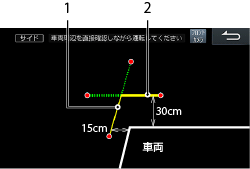 1.車両側方:約15cmの距離目安ガイド