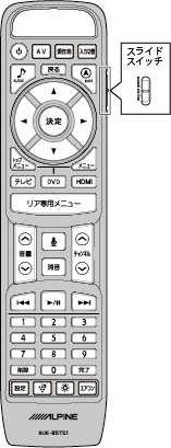 リアビジョンを接続し、後席表示設定を「前と同じ表示」に設定すると、リアビジョンに本機画面が映し出されます。別売リモコンRUE-RST01で、リアビジョン側から本機を操作することができます。
