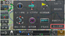 NAVIスイッチを押して表示されるナビメニュー画面で[ルート消去]にタッチして、ルートを消去することもできます。