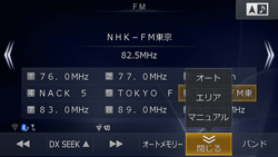 ラジオ画面で[マニュアル▲]にタッチしたあと、[オート][エリア][マニュアル]のいずれかにタッチします。