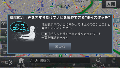 ボイスタッチについての機能紹介画面が表示されたら[閉じる]にタッチします。