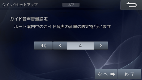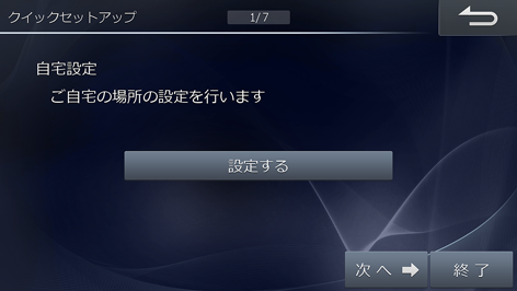 設定途中で[終了]にタッチすると、次回起動時にもクイックセットアップ画面が表示されます。