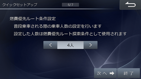 にタッチして、普段の乗車人数を設定し、[次へ→]にタッチします。