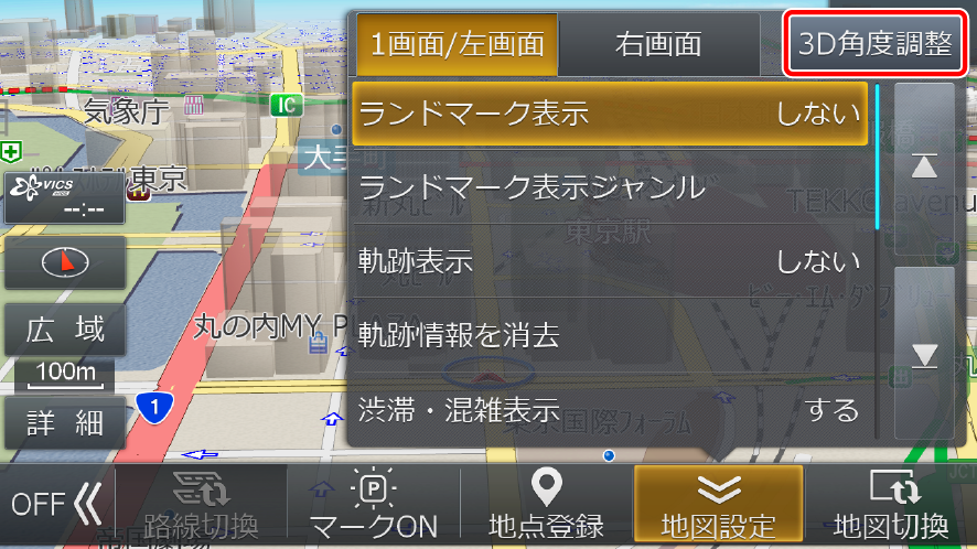 立体的な地図(3D マップ)を表示しているときの視点の角度をかえることができます。