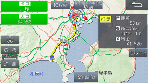 [自宅]にタッチすると、自動的に現在地から自宅までのルートを探索して設定します。