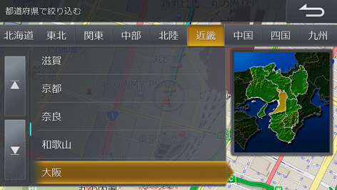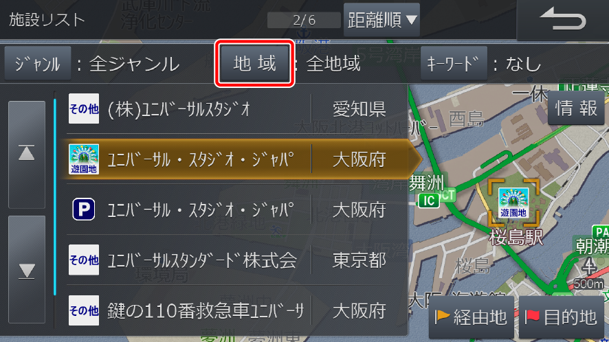 名称で施設を探したときに多くの候補が表示された場合、地域で絞り込むことができます。