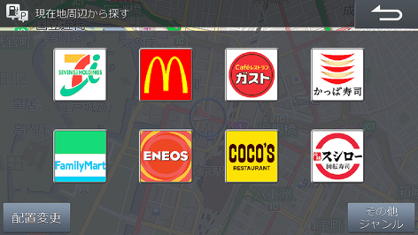 現在地周辺にある施設を検索して、ジャンルで絞り込むことができます。
