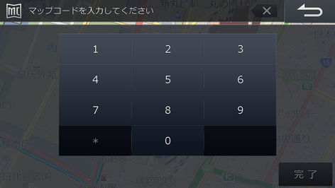 [完了]にタッチすると、検索したマップコード地点の地図が表示されます。
