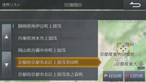 地名の読みを入力し、[完了]にタッチすると、住所がリスト表示されます。