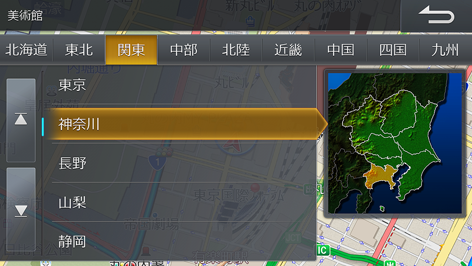 地域タブにタッチし、リストから都道府県名を選んでタッチします。