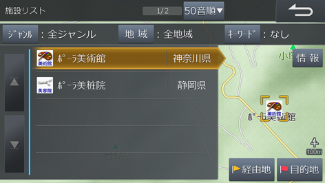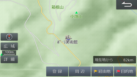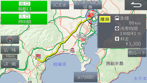 検索した地点を目的地として設定して、ルート案内を開始します。
