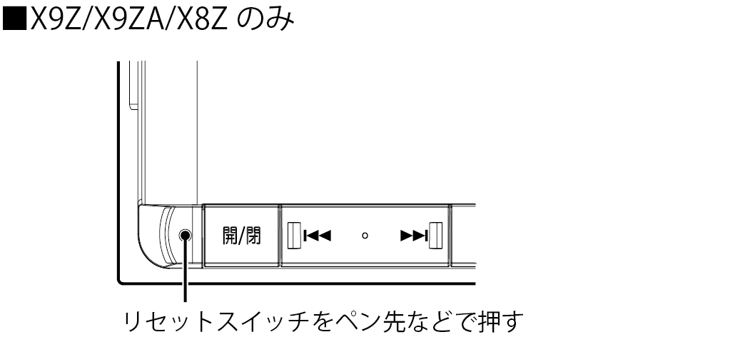 操作中に停止したままになったり画面が暗くなったままになるなど正常に動作しなくなった場合は、一度エンジンをOFF/ONしてください。それでも正常動作しない場合は本機をリセットしてください。