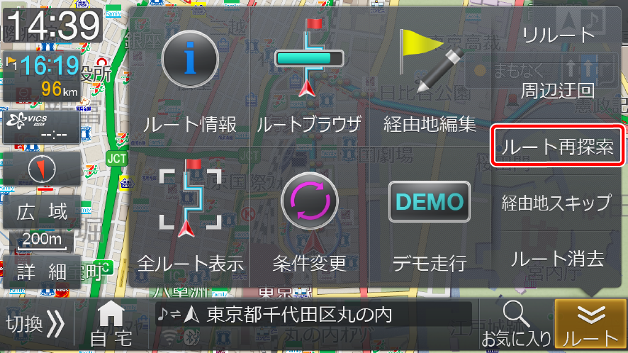 [ルート再探索]にタッチします。
