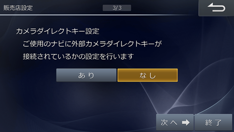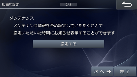 設定途中で[終了]にタッチすると、次回起動時にも販売店セットアップ画面が表示されます。