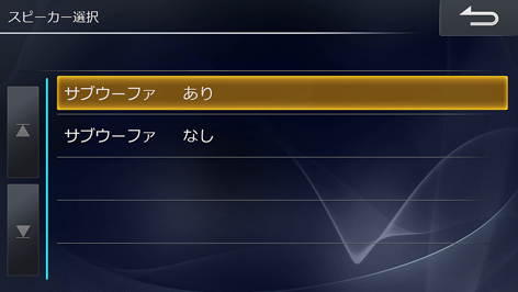 [サブウーファー]にタッチし、サブウーファーの有無を選んでタッチしたあと[決定]にタッチします。