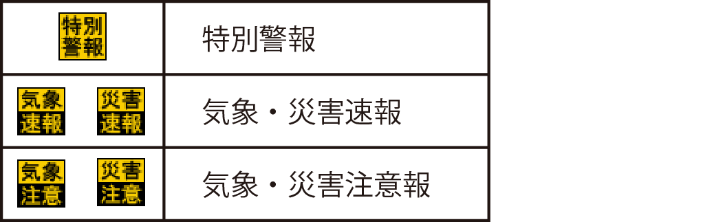 [特別警報]または[全情報]にタッチして特別警報リストと全情報のリストを切りかえます。