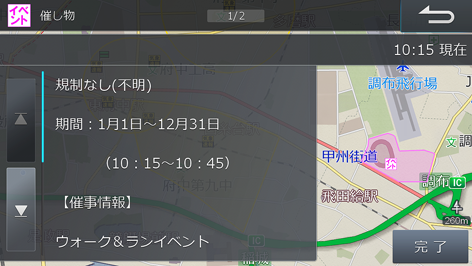 ・リストから情報を選択して[完了]または画面右側の地図にタッチすると、対象となっている地点を地図上で確認できます。