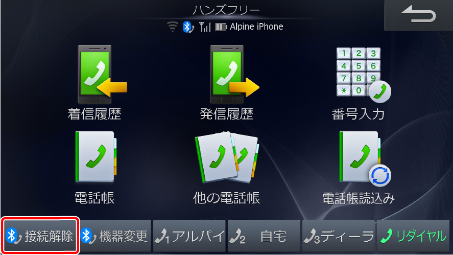 [接続解除]にタッチすると、携帯電話の接続が解除されます。