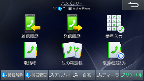 NAVI/[MENU]スイッチを押してナビメニュー画面を表示し、[ハンズフリー]にタッチします。