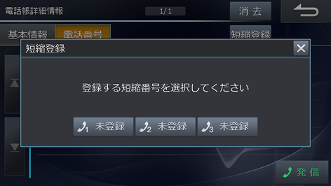 登録する短縮ダイヤルを1~3から選んでタッチします。