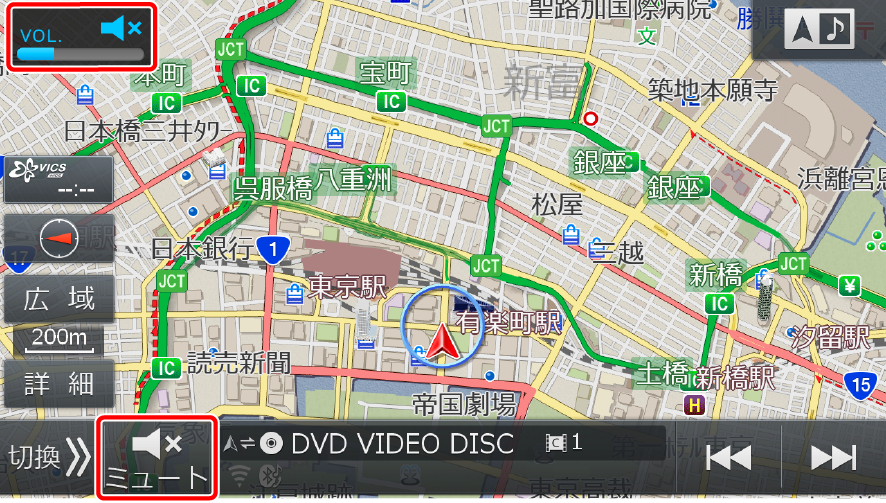 現在地画面上の操作スイッチをAV操作モードに切りかえます。