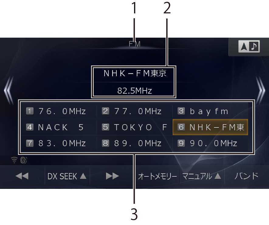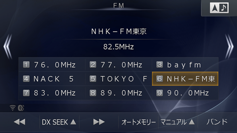 ラジオ画面でプリセットスイッチにタッチして、希望の放送局を受信します。
