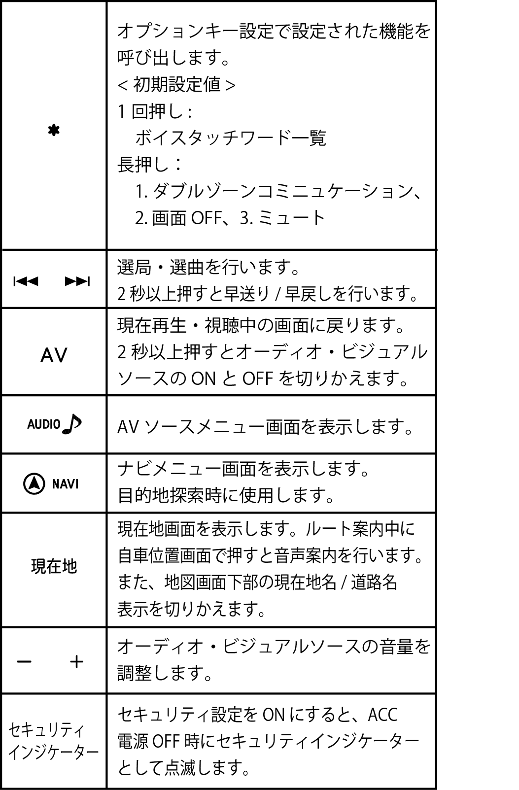 取り付け車種によりスイッチ形状・配列・名称が異なります。下記イラストは実際の製品と異なる場合があります。