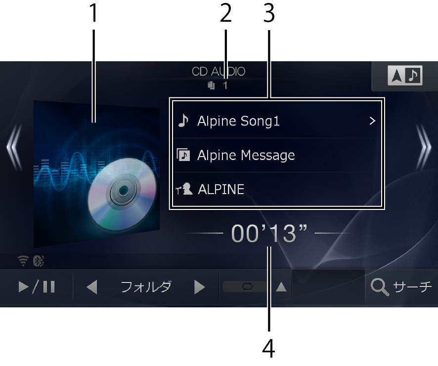 本機でCDディスクを再生した場合、本機に収録されているGracenoteデータベースから検索したアルバム名やアーティスト名、曲名などのタイトル情報を表示できます。