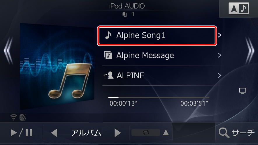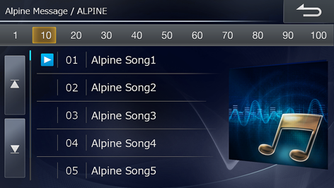 再生対象となっている曲名をリスト表示します。リストから聴きたい曲を選ぶことができます。