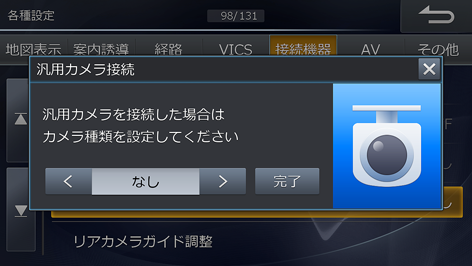 設定値:なし/リアカメラ/ルームカメラ/サイドカメラ/コーナーカメラ