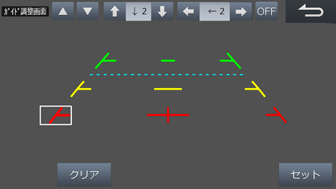 車種専用チューニング設定した後はリアカメラガイド調整は行わないでください。車の状態によりガイド線の微調整が必要な場合のみ調整を行ってください。